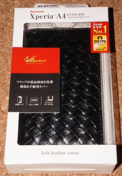 > ☆新品★ELECOM Xperia A4 SO-04G レザーカバー 編み込み調 ブラック