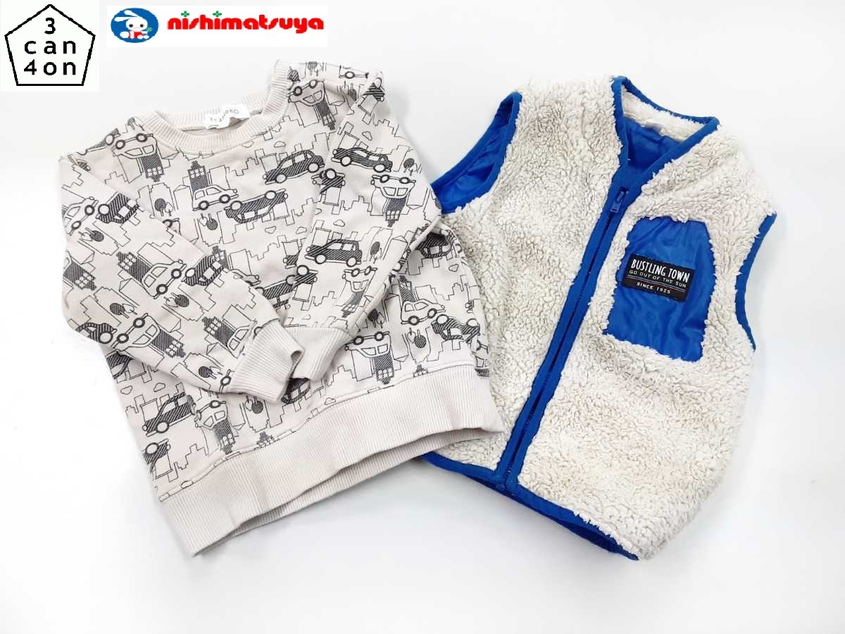 > ☆2着 (3can4on/サンカンシオン)ブルゾン&(西松屋)アウターセット☆ ボーイズ 男の子 ブルゾン90サイズ ボアベスト95サイズ