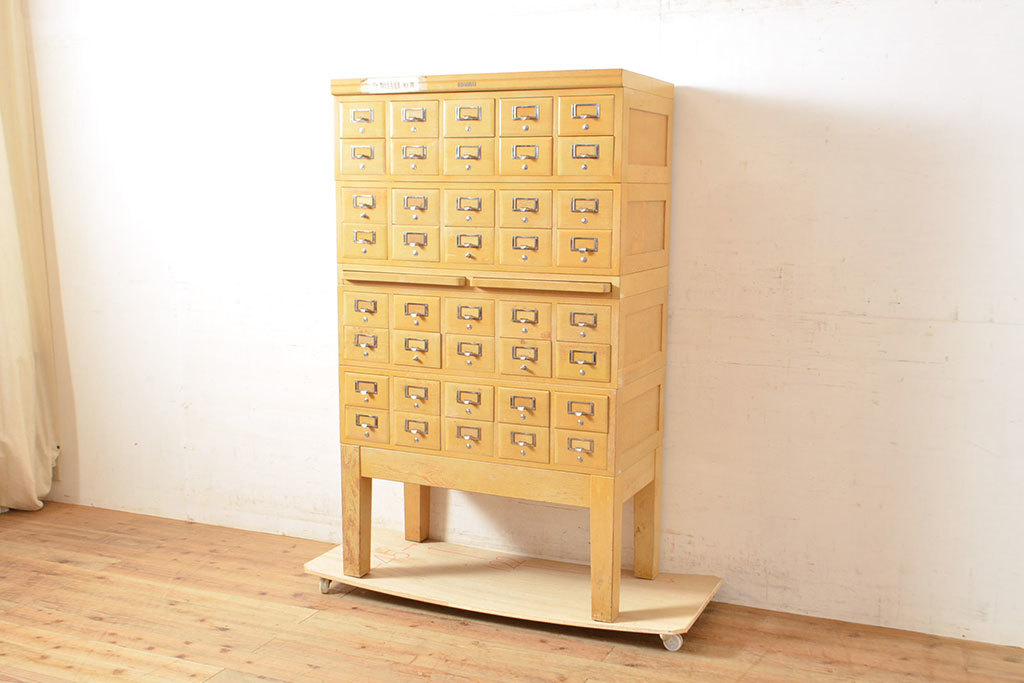 - R-050015 レトロ家具 昭和レトロ KIHARA 小物収納に便利なナラ材製ネームプレート付きカードケース(引き出し、チェスト)