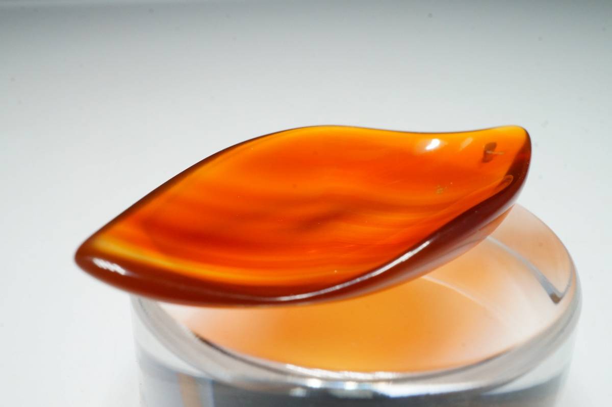 - 希少30年前の未使用在庫!上質赤瑪瑙・めのう・メノウ彫刻カービング「葉」ルース色合い彫が美しいペンダントトップ12ct