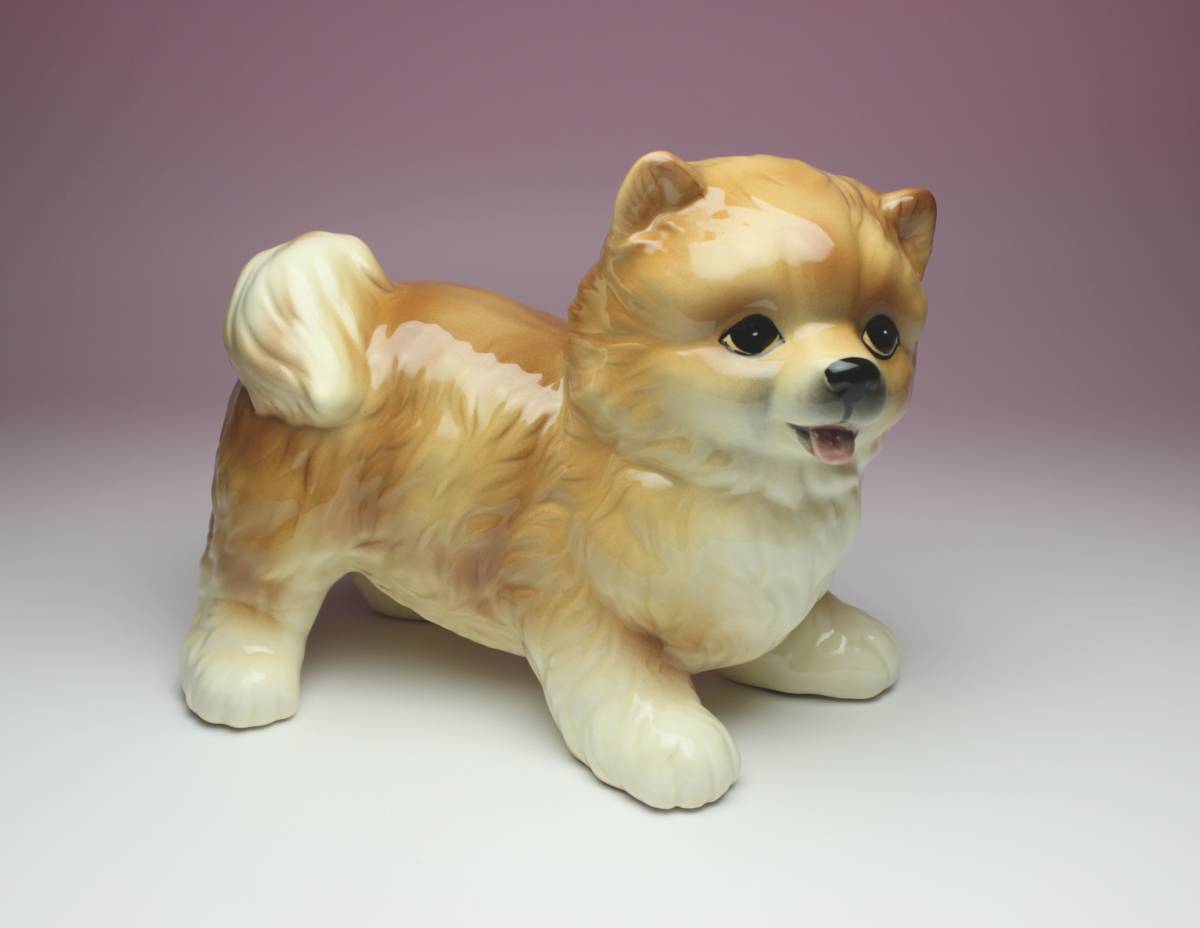 - 陶器製 犬置物 ポメラニアン★パピー オレンジ 茶 レッド 犬フィギュア 子犬 赤ちゃん 新品 日本製 ハンドペイント 海外輸出向け 瀬戸物