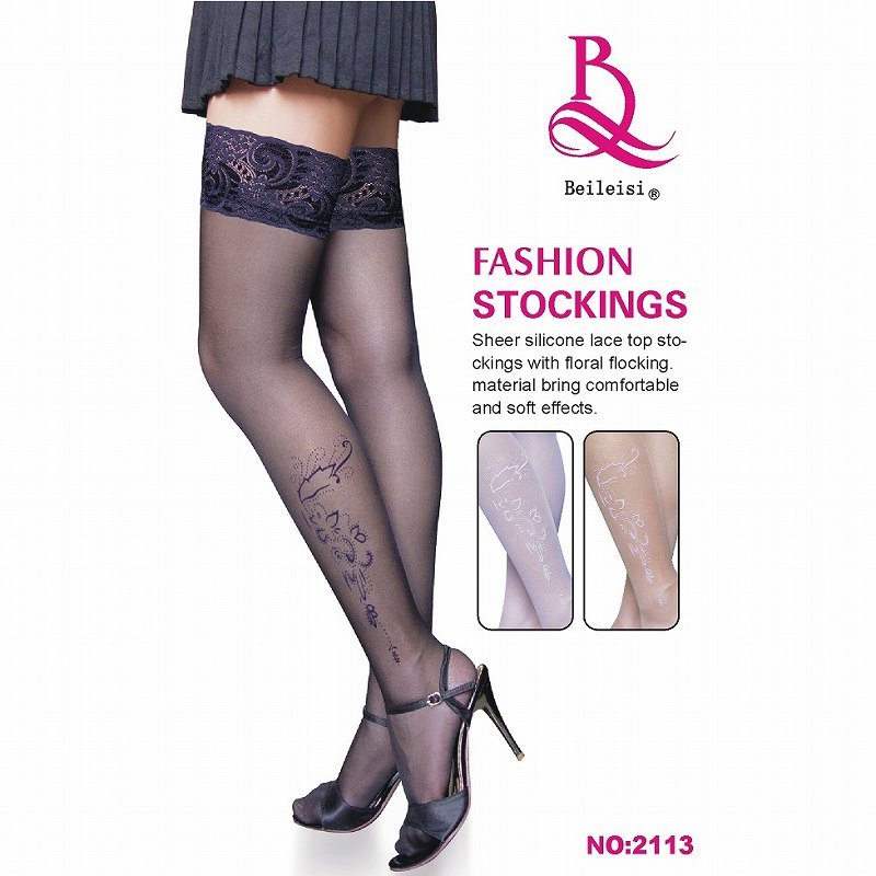 - ストッパー付きのエキゾチック柄ストッキング 白