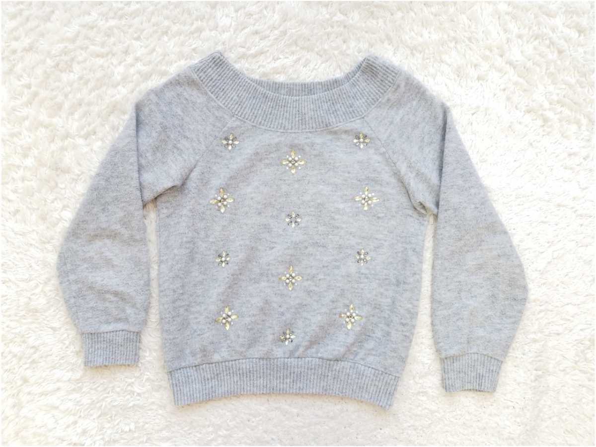 - ☆美品ワンウェイonewayレディース胸元キラキラビジュー付きグレー長袖ニットお姉さん綺麗め清楚セーター上品トップス☆
