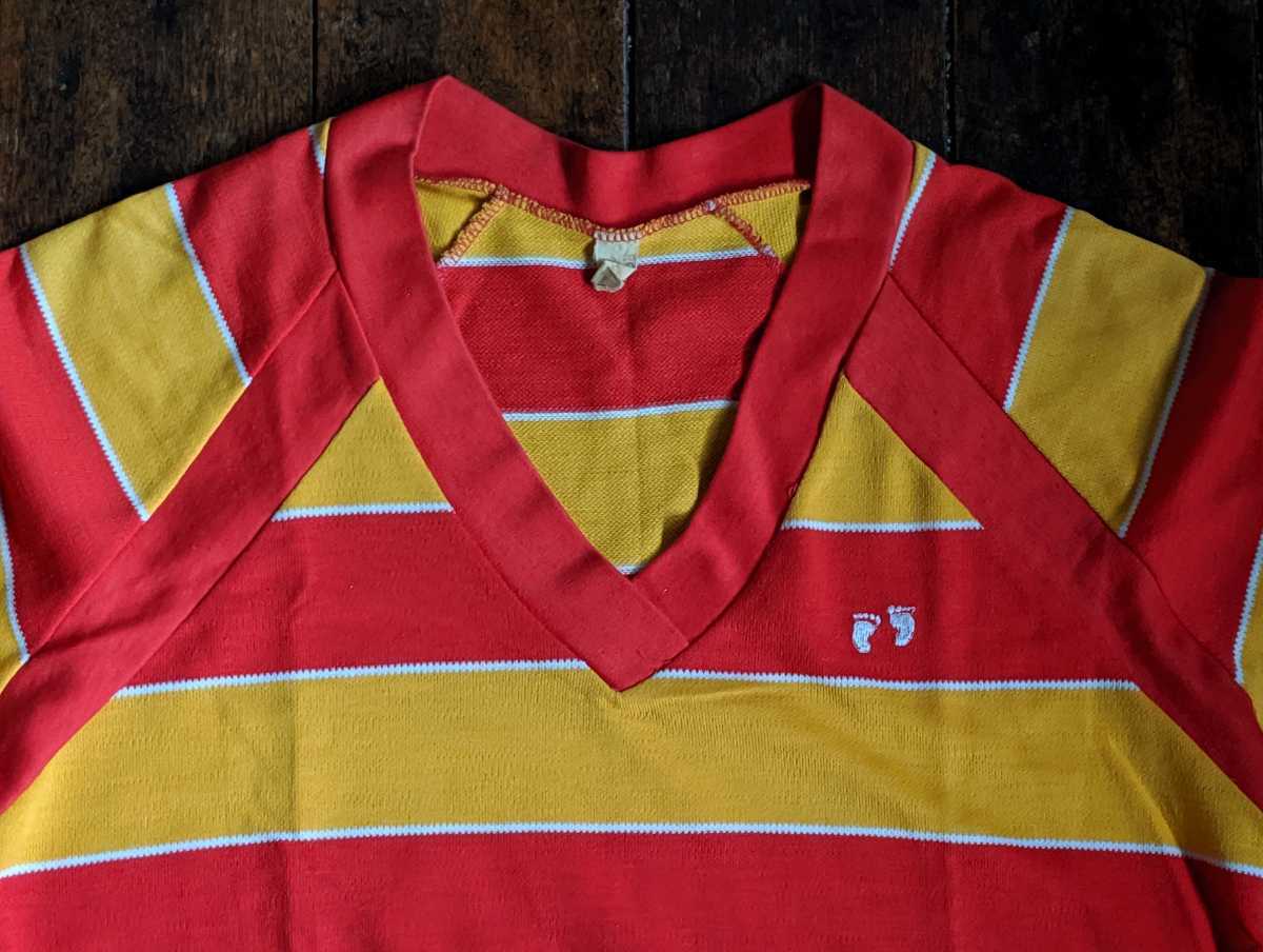 - 鹿の子 ☆ ハンテン V ネック リブ 太 ボーダー T シャツ ビンテージ hangten ライトニングボルト オーシャンパシフィック オールド サーフ