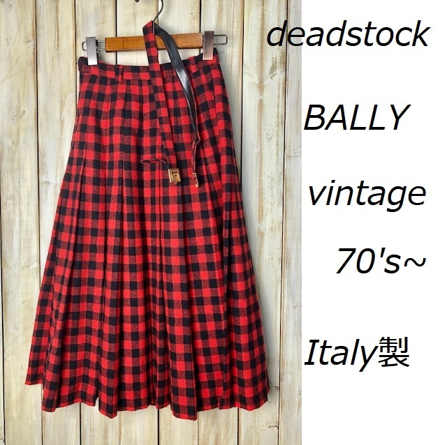 > deadstock 70's BALLY バリー イタリア製 チェック ウール プリーツロングスカート 44 ヴィンテージ オールド レトロ ●71