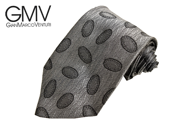> N-1913★送料無料★超美品★GIAN MARCO VENTURI ジャンマルコ ベンチューリ★イタリア製 シルバー 総柄 織り生地 シルクネクタイ