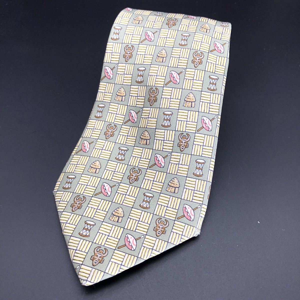 - HERMES エルメス 民族 インディアン柄 シルク ネクタイ
