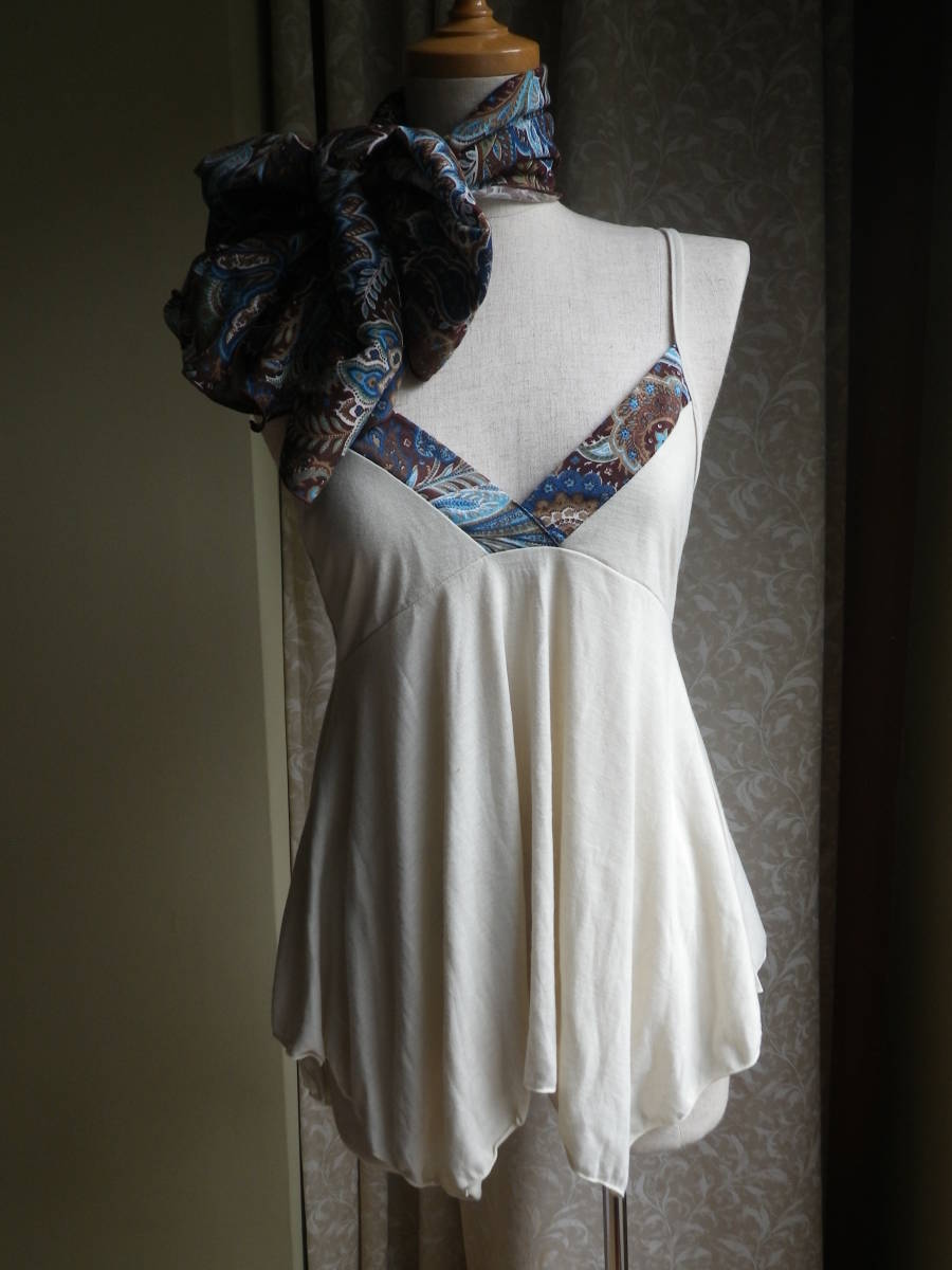 - 05【新品タグ付】*Panama Soda ペイズリー柄の切替タンクトップ 共布スカーフorケープ付 ベージュ系 M 送料無料