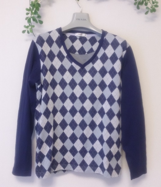 - 美品★ofuon オフオン イトキン ★Vネック長袖ニットセーター★44★ダークパープル×ホワイト×グレー