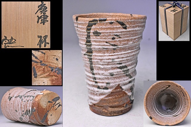 > 鈴木五郎 ★ 唐津 杯 ★ 共箱 ★ 絵唐津 麦酒杯 ビア杯 ★ 酒器 ★ 普段使いの湯呑にも ★ 造形の面白い手取りの良い逸品 ★