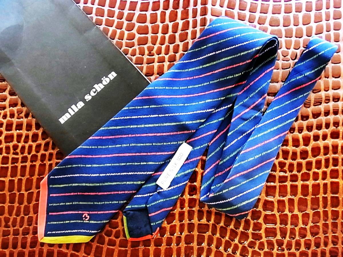 - ■E705N●良品●ミラショーン【Mロゴ入】ネクタイ【ストライプ】
