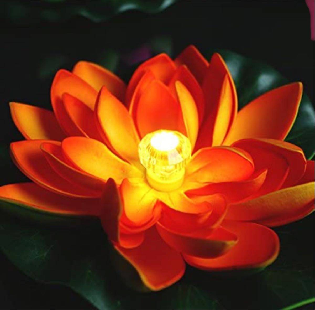 - 電光ホーム LED 光る ハス 造花 オレンジ 防水