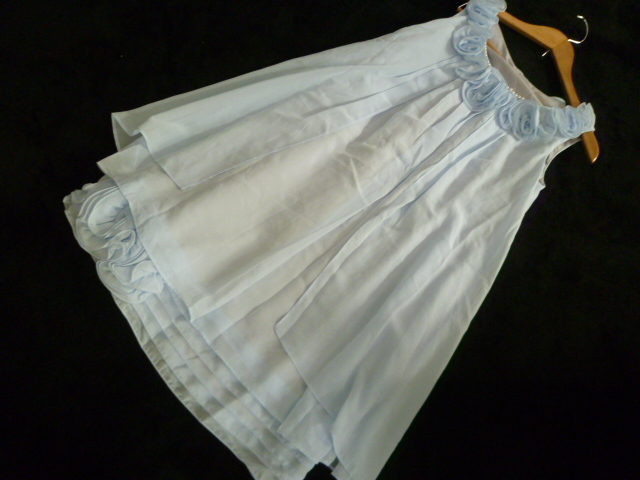 - LAISSE PASSE/レッセパッセ△淡水色系裾バラモチーフネックパール付きシフォンワンピース38/膝丈結婚式フォーマルパーティー姫系△OP123