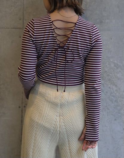 - Ifuru リブバックレースアッププルオーバーカットソー パープル