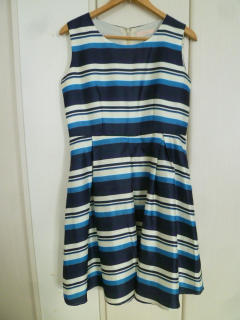 - IMAGE/イマージュ△紺ブルー光沢ボーダーフレアーワンピース13/13号ネイビー結婚式パーティーお呼ばれ二次会大きいサイズビックサイズ△24