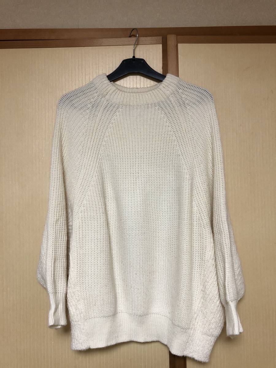 > USED・earth music&ecology Premium Label・ドルマリンスリーブニット・アイボリー・サイズフリー・400円