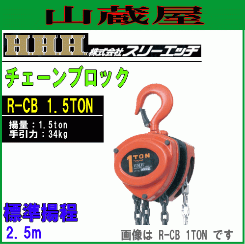 - スリーエッチ チェーンブロック R-CB 1.5TON 揚量1.5t ホイスト 巻き上げ機 荷揚機 H.H.H [送料無料]