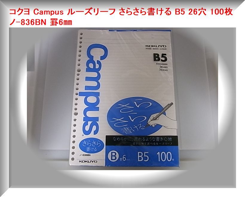 |  | コクヨ Campus ルーズリーフ さらさら書ける B5 26穴 100枚 ノ-836BN 罫6㎜ |  |