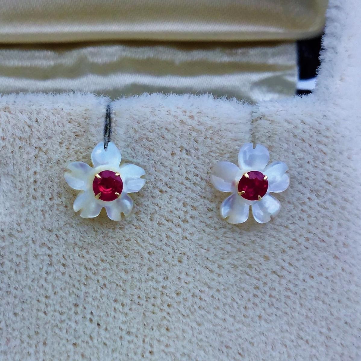 - PC1214:K18YG 白蝶貝 ルビー 2WAY ピアス