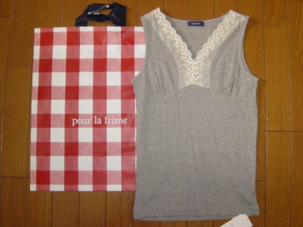 - 新品プーラフリーム◆花柄レース タンクトップVISライト グレー◆ロペピクニックJUNブランド