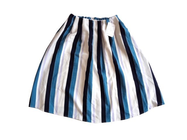 > 新品 定価7900円 トルディア TRUDEA 青 ボーダー フレア 膝丈 スカート S 日本製 7 小さいサイズ