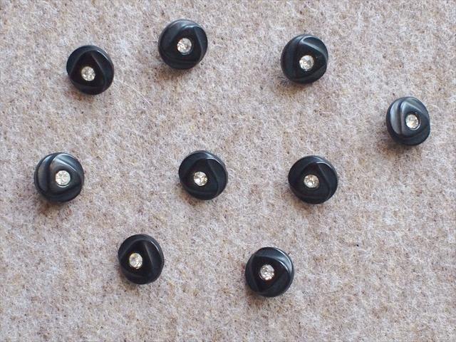 - レトロビンテージ手芸雑貨*小さなボタン・ドールアウトフィットなどに・ラインストーン入り・ブラックA・Φ12・9個セット