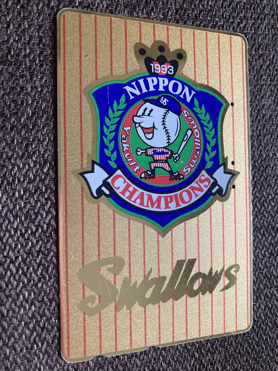 > ★ヤクルト スワローズ Yakult Swallows 1993年 優勝 日本一 使用済み テレホンカード テレカ 50度数 金 ゴールド ミニレター
