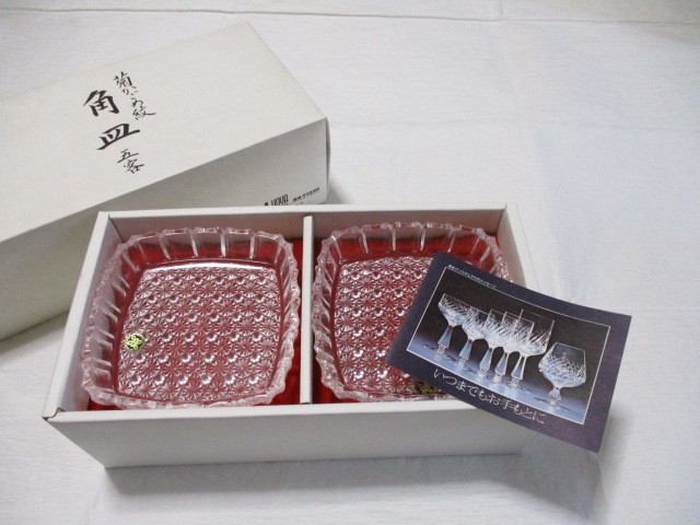 - 保谷クリスタル HOYACRYSTAL 角皿 5客 未使用