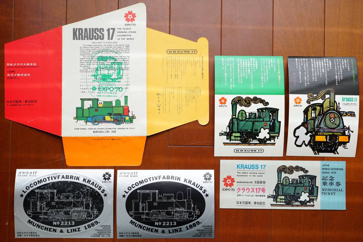 - クラウス17号 記念乗車券 ステッカー2枚 絵葉書2枚 日本万国博覧会EXPO70参加記念 日本クラウス保存会 協賛カゴメ(株):KRAUSS・蒸気機関車