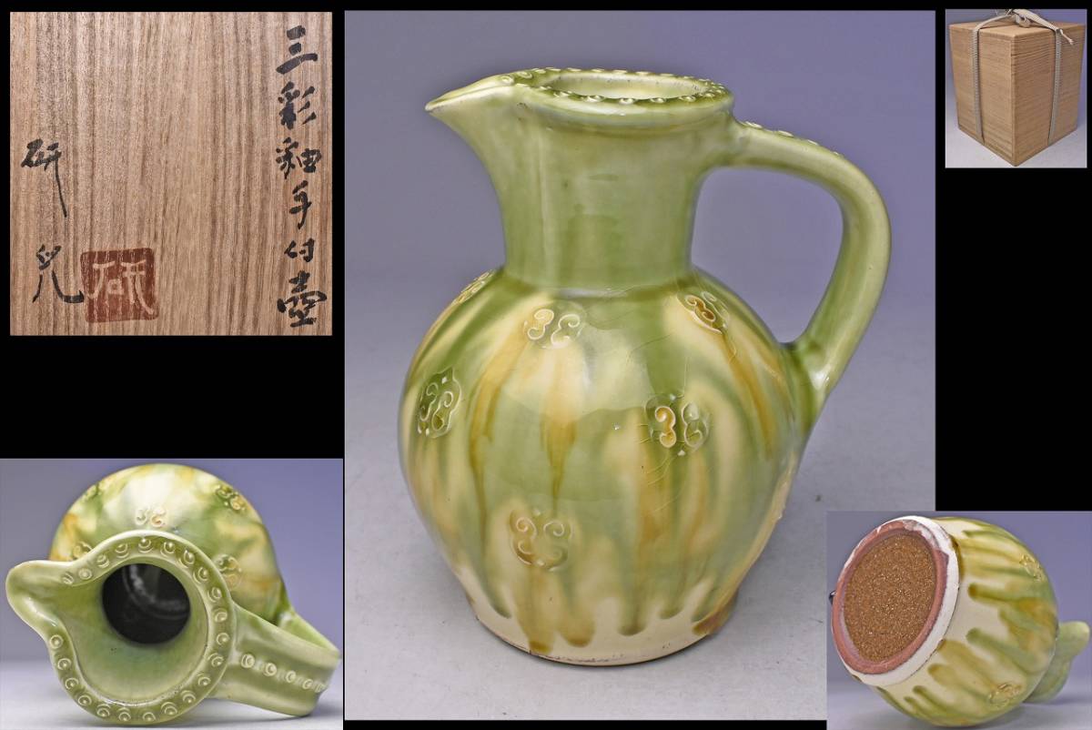 > 舩木研児 ★ 三彩釉手付壺 ★ 共箱 ★ 不志名焼 ★ 洗練された民芸陶 ★ 船木研児 舩木研児 ★ 父:船木道忠 ★
