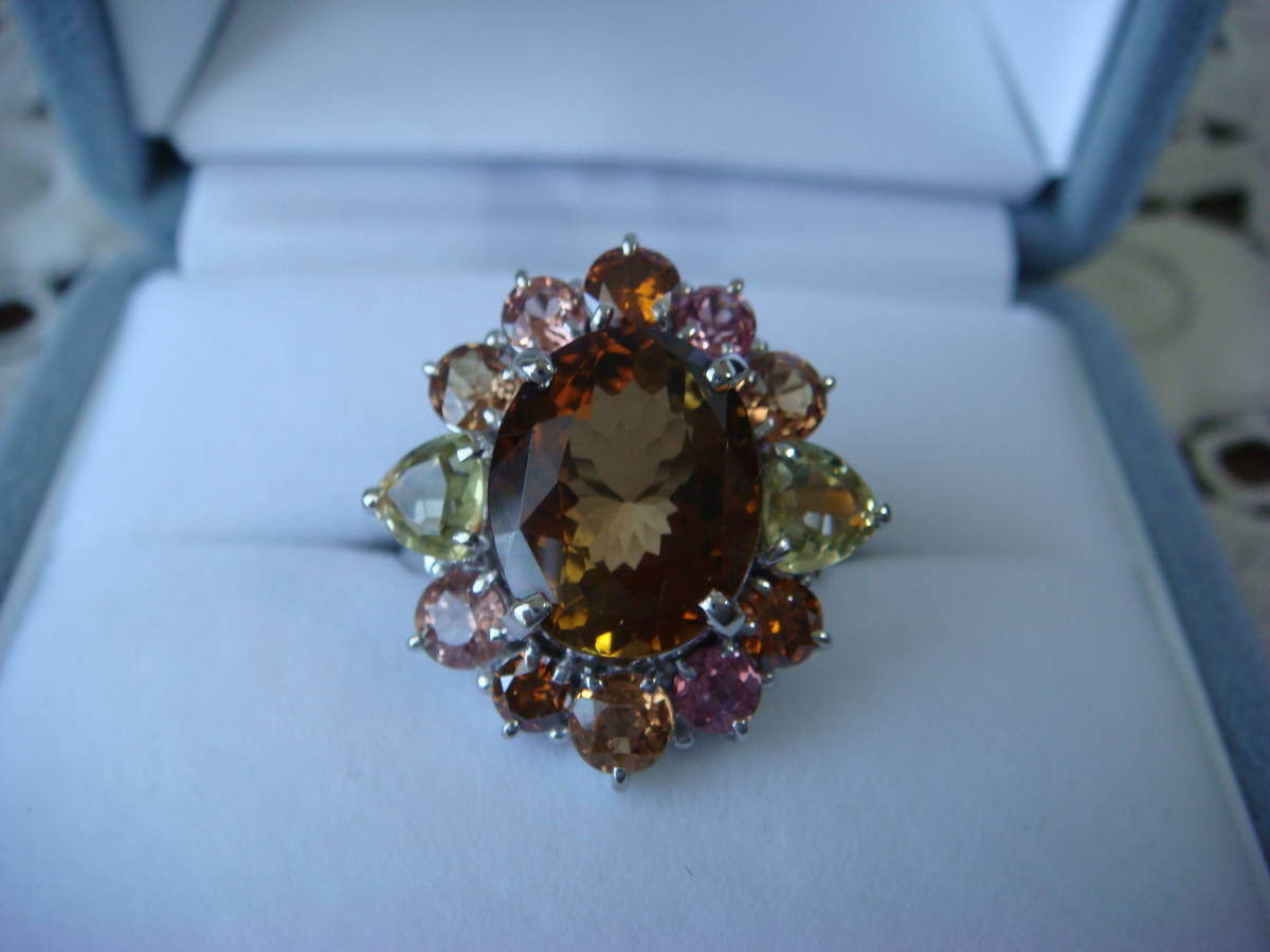 - ◎大きなトルマリン ダイヤ ガーネット サファイヤ リング プラチナ製 鑑別書付◎