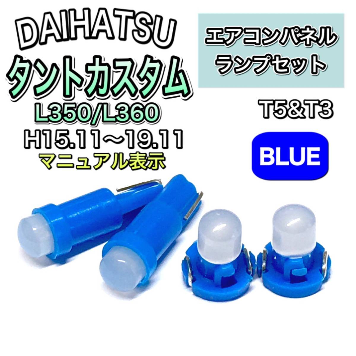 - タントカスタム L350 L360 マニュアル表示 インテリアパネル 打ち換え LED エアコンパネル T4.7 T5 T4.2 T3 ウェッジ球 ダイハツ ブルー