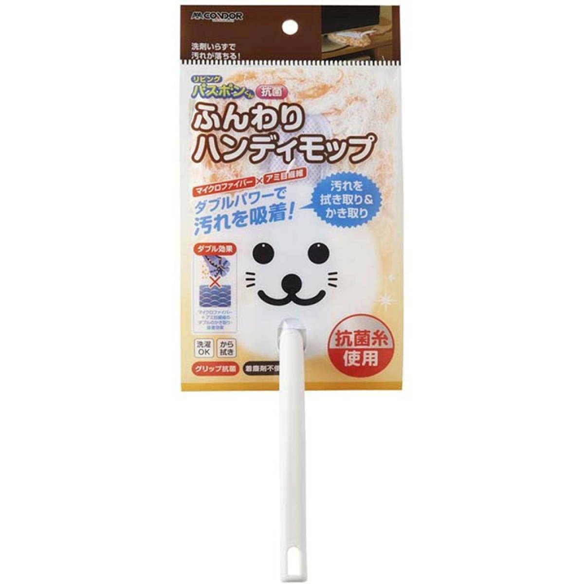 - 山崎産業 ハンディ モップ リビングバスボンくん ふんわりモップ ホコリ掃除 清掃マイクロファイバーとアミ目繊維のダブルのかき取り効果!