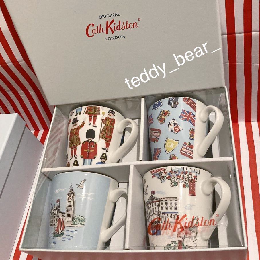 - 送料無料 レア 新品 Cath Kidston キャスキッドソン スタンレーマグ 4個セット ロンドンタウン 箱入り マグカップ コップ
