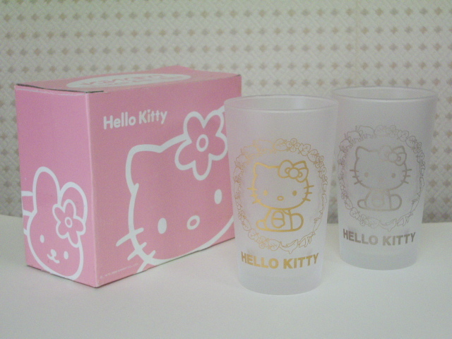 - 非売品◆ハローキティ カード 入会 プレゼント グラス 2個set◆2000年製 ゴールド & シルバー
