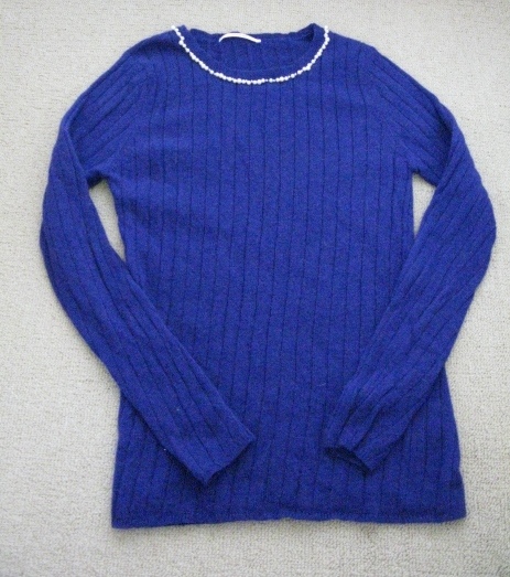 - ★レディース★ニット★セーター★長袖★紫★無地★丸首★パール調ビジュー付き★【PayPayフリマ同時出品中】