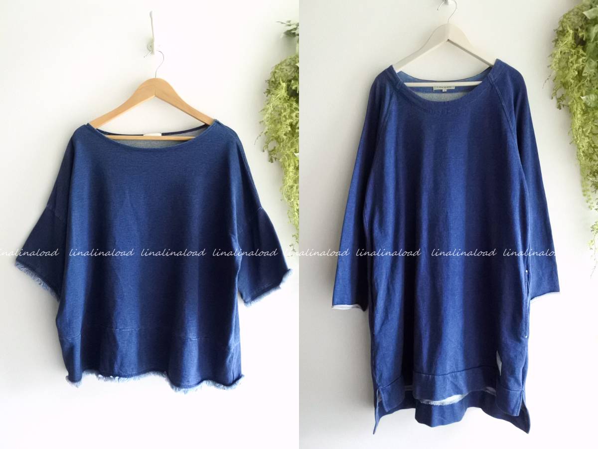 > GU、FREUDE*インディゴ染① ライトスウェット地 半袖、長袖チュニック L 2枚セット 美品です ジーユー しまむら
