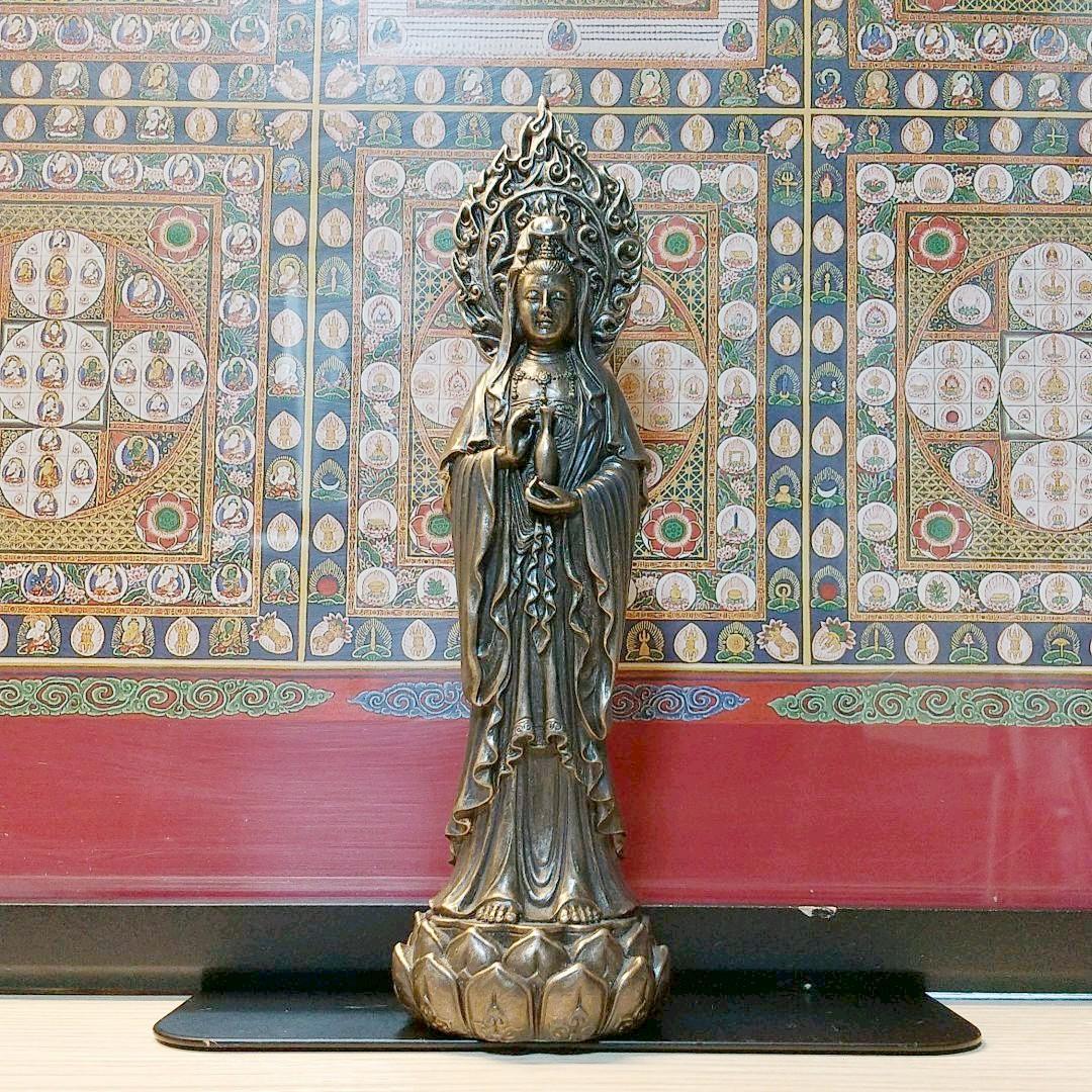 - コールドキャストブロンズ 蓮の玉座に立っている観音菩薩像