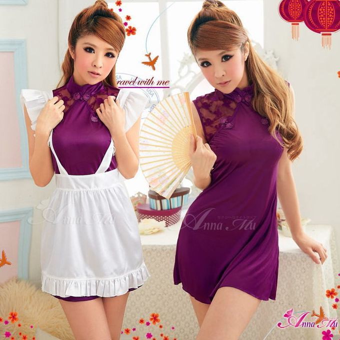 > 新品 未使用 送料無料mc30ミニチャイナドレス+エプロンコスチューム 背中メッシュレース セクシーコスプレ衣装大人costume文化祭学園祭余興