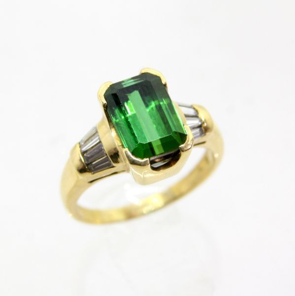 - ◎中古美品◎18金 グリーントルマリン,ダイヤ リング 15号