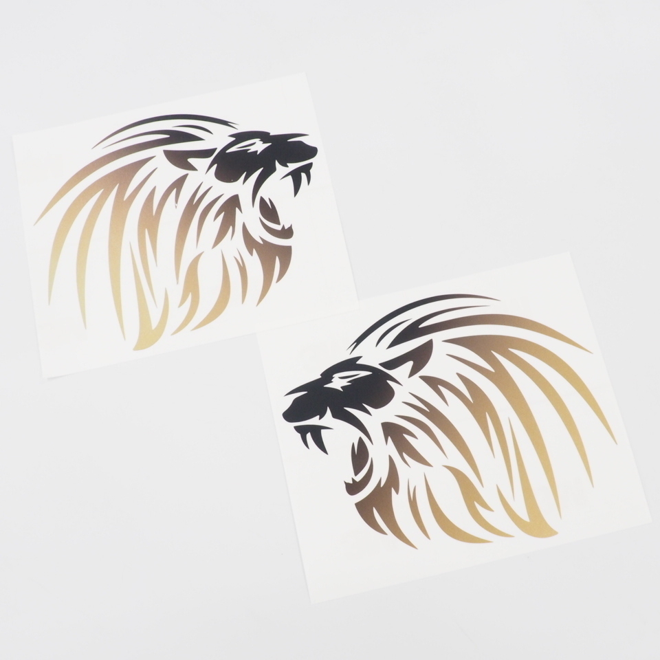 > カッティングステッカー ゴールド ライオン 左右セット 8cm ヘルメット タンク 窓ガラス カスタム leaf トライバル