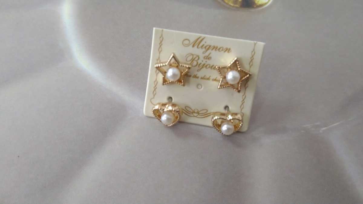 - □未使用□ゴールドカラーハート&スター・パールビーズ・ピアス2セット□