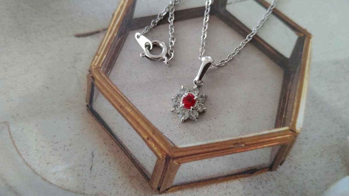 - □クリアレッドビジュー×ラインストーン□シルバーカラーチェーン・ネックレス□