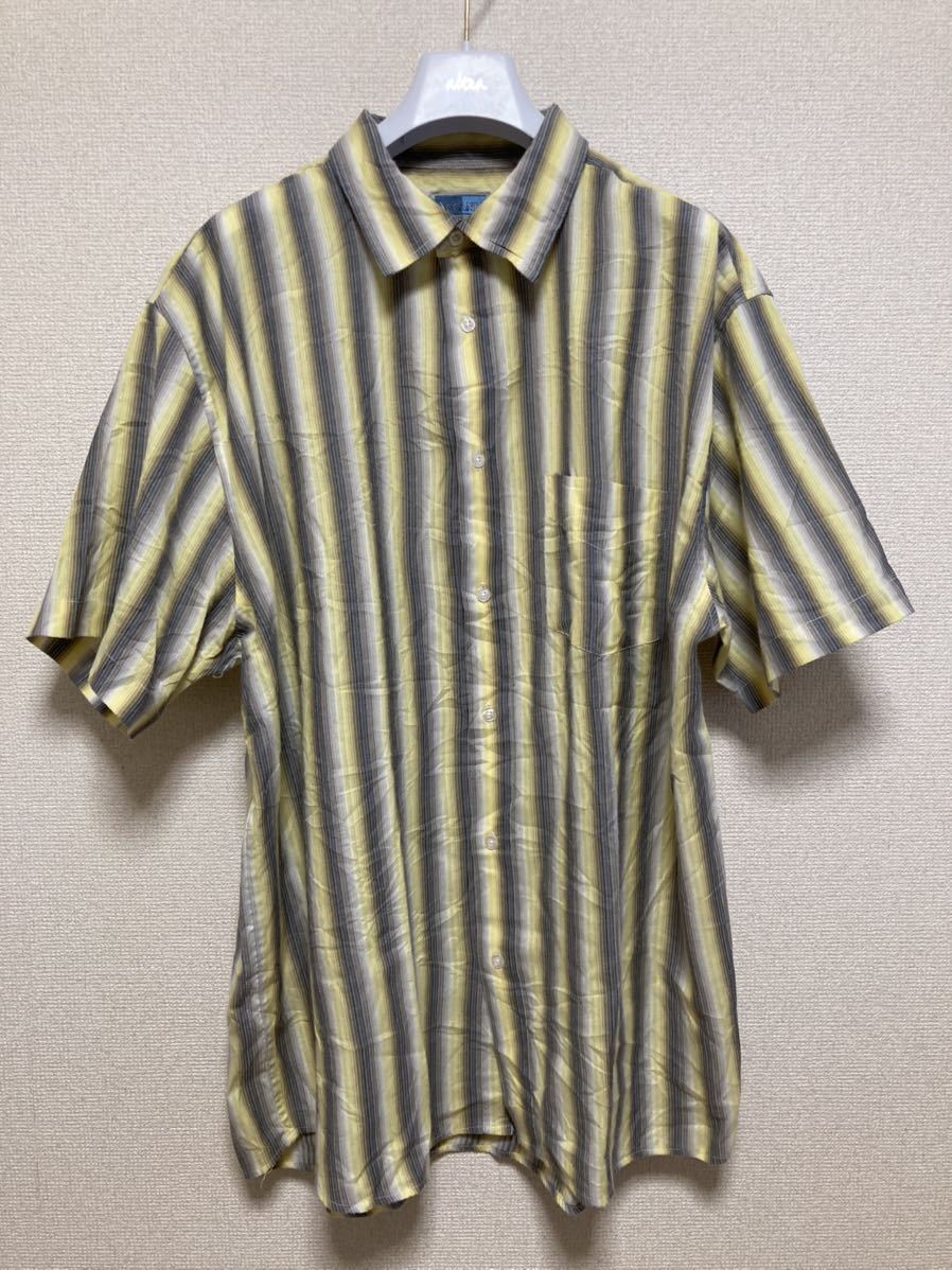 > ヨーロッパ古着 ACCANTO 半袖シャツ 総柄シャツ ストライプシャツ XXL /EURO古着 ポリコットンシャツ