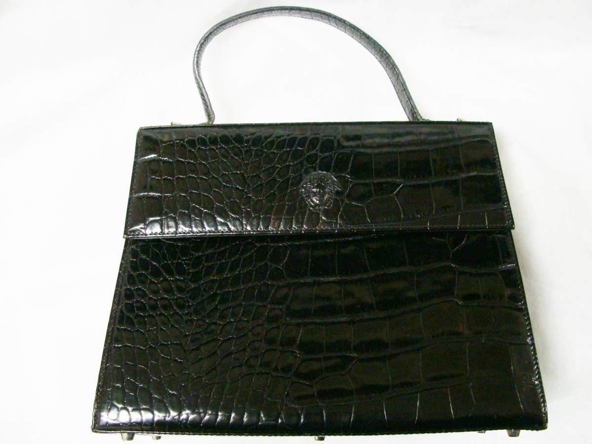 > GIANNI VERSACE ジャンニ ヴェルサーチ ◇ クロコ メデューサ 型押し レザー 皮 革 ハンド バッグ 鞄