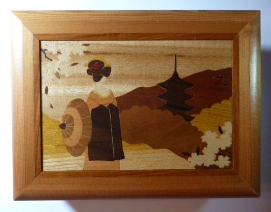- ξ 寄木細工 大文字焼き 京都 オルゴール 小箱 アクセサリーケース ξ 木象嵌 小物入れ ケース 木 象嵌 鏡 舞妓 Kyoto