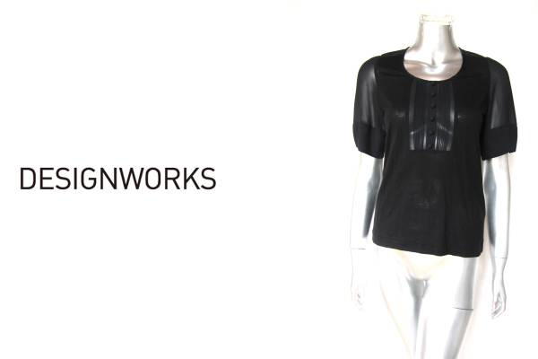 - 二点落札で送料無料! D-76 DESIGNWORKS デザインワークス ウール 混 半袖 トップス 黒 38 レディース