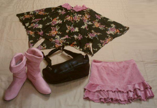 - ■ピンクのバックスキン調ブーツとスカート2点 バッグも (Dm687)