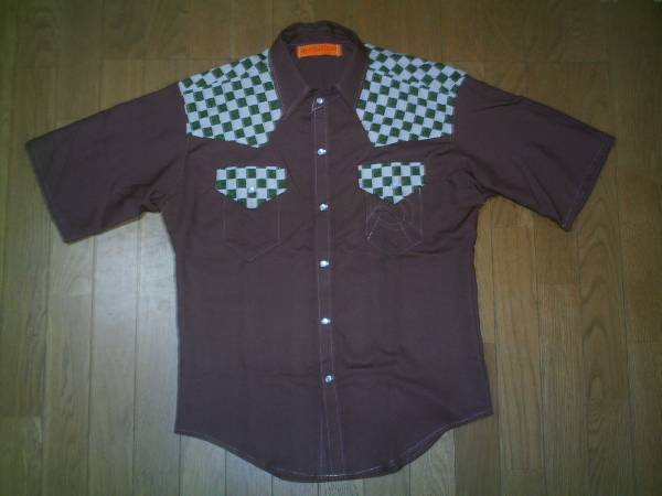 - ☆手作り☆ 市松模様生地付きウエスタン半袖 XL 茶 新品