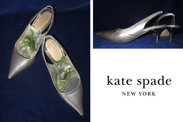 - 二点落札で送料無料! K17 kate spade ケイト スペード エナメル パンプス 23 イタリア製 シルバー レディース 靴 サンダル